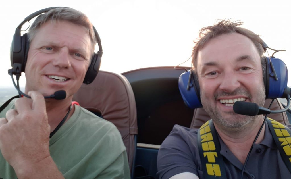 Thomas Moor, Biberacher Fluglehrer, nimmt die Südfinder-Volontärin zu einem Rundflug über’s Ländle mit – Beide leiden unter Höhenangst.